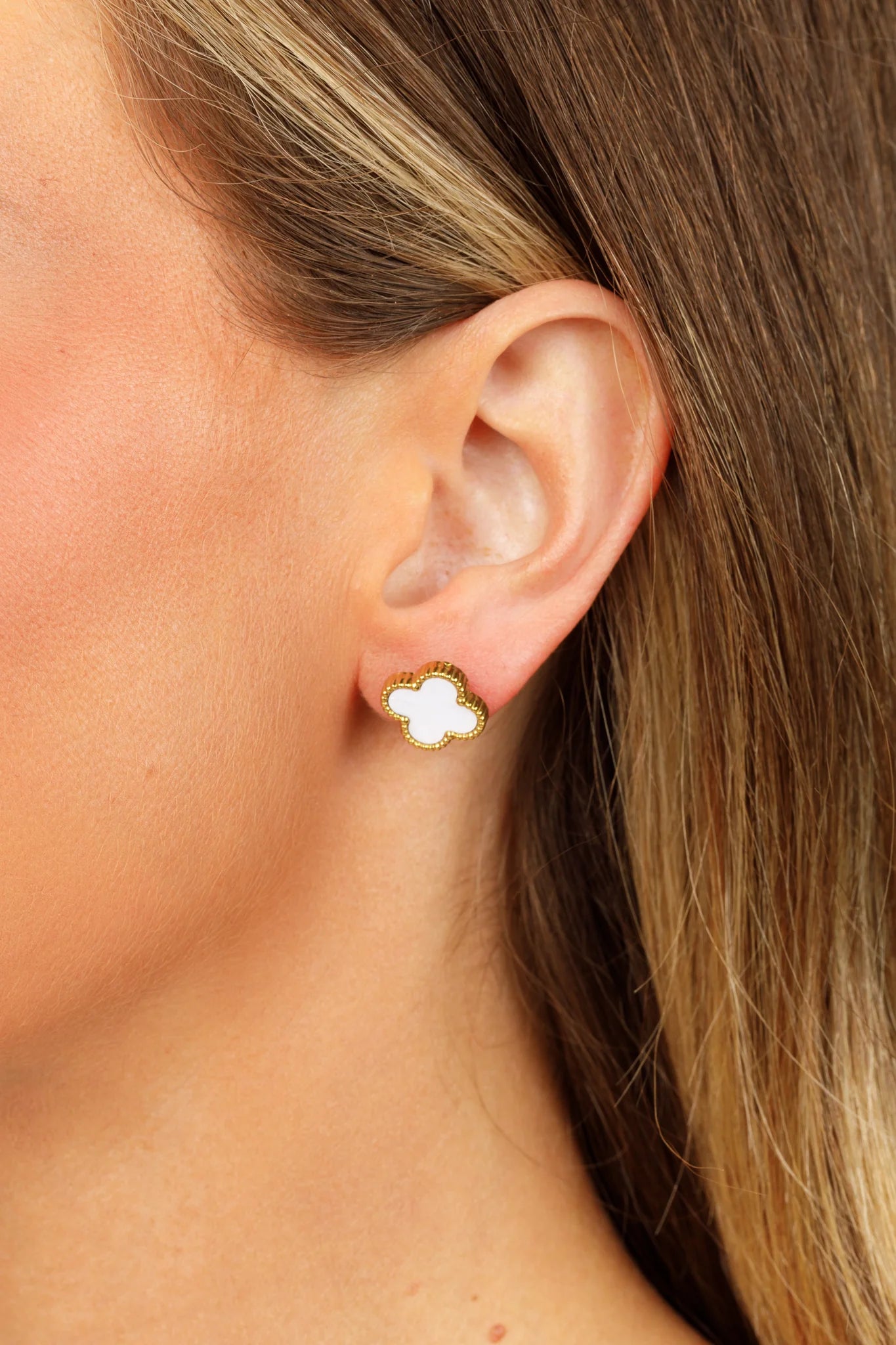 Embrace the charm of luck with our Clover bliss Earrings. Designed in the shape of a four-leaf clover, these earrings symbolize hope, faith, love, and luck. Crafted from high-quality materials, they feature a delicate yet eye-catching design that adds a touch of whimsy to any outfit. Perfect for everyday wear or special occasions, these earrings are a stylish reminder to always look for the good. Wear your luck with confidence!