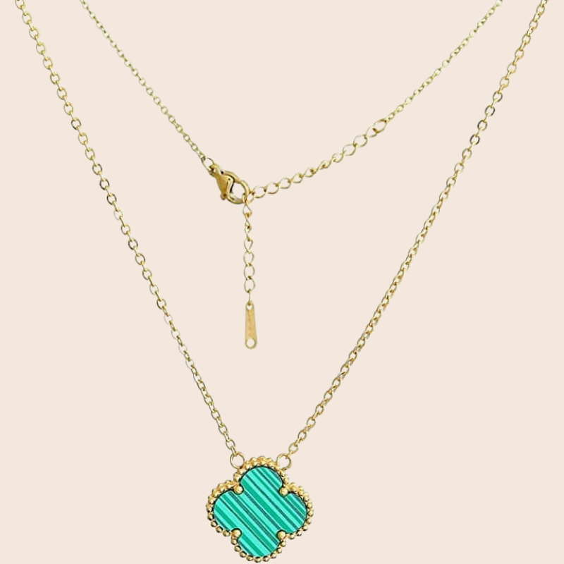 This elegant necklace features a delicate 18K gold-plated chain paired with a captivating clover pendant. The pendant’s minimalist design is both timeless and sophisticated, making it a versatile piece that can elevate any look, from casual to formal. The clover adds a touch of mystery and refinement, while the gold plating enhances its luxurious appeal. Perfect for layering or wearing on its own, this necklace embodies effortless style with a modern twist.